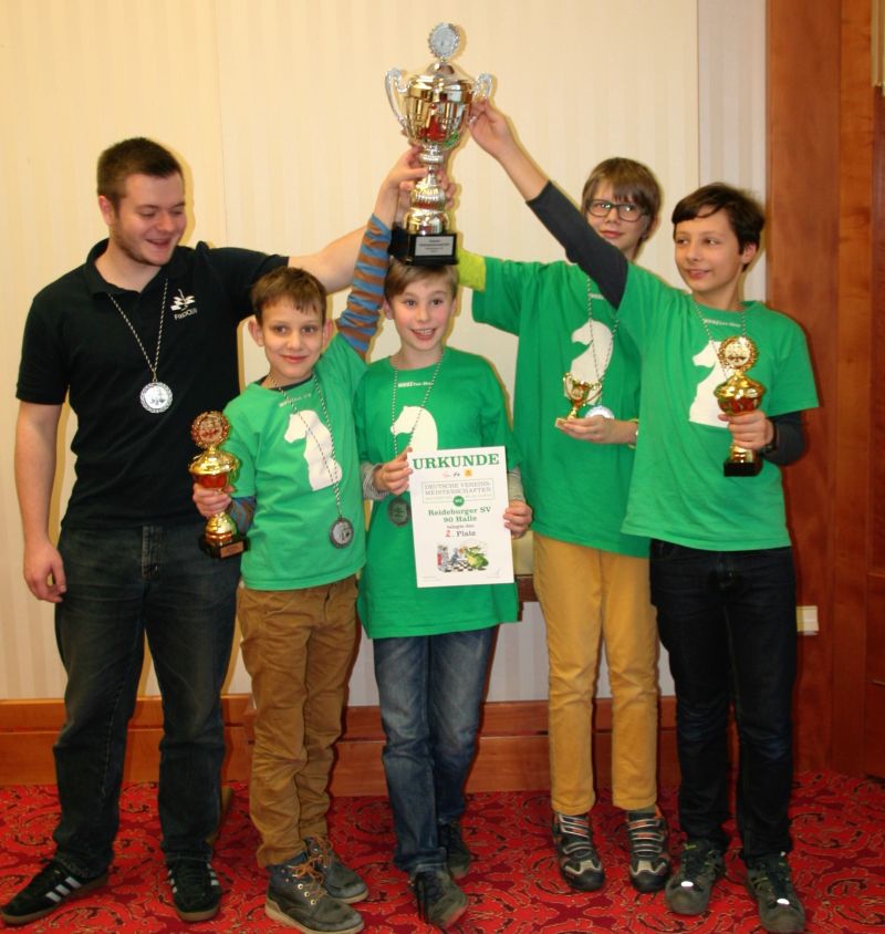 Das erfolgreiche Team bestand aus Marvin Hennig, Hugo Post, Florian Dietz und Arne Seidel. Trainer war Fridolin Mertens. Bei 6 Siege gegen Paderborn, Bibertal, Leipzig, Hamburg, München und Mannheim gab es nur eine Niederlage gegen den Deutschen Meister Köln-Porz. Und selbst da war mehr drin und eine Sensation wäre geglückt. Die Brettbesten des Turniers an Brett 3 und 4 kommen mit Florian und Arne aus Reideburg.