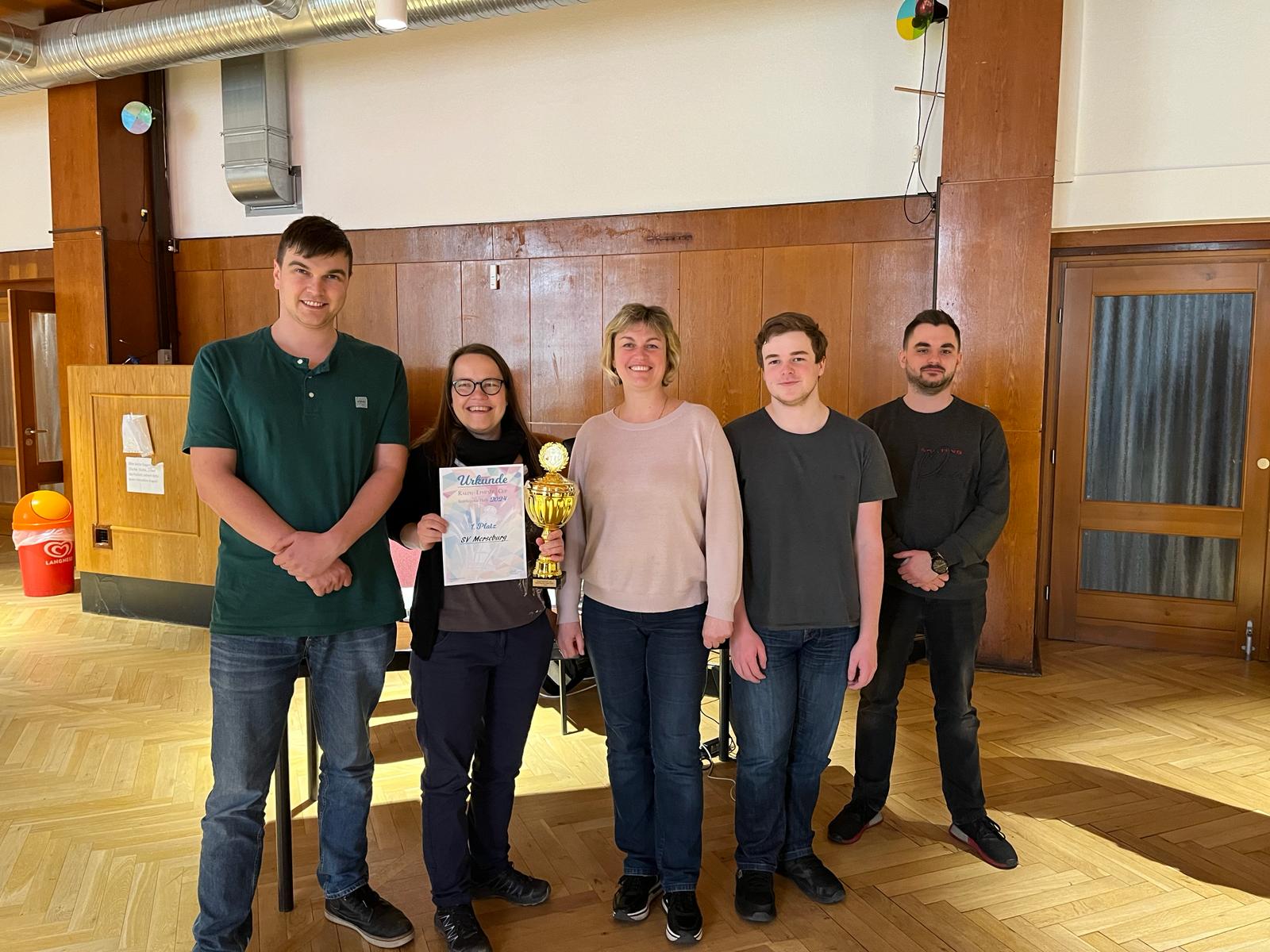 Die Siegermannschaft des SV Merseburg (v.l.n.r.): Dustin Hoffmann, Dr. Tanja Pflug, Mariana Korniichyk und Simon Donath mit Turnierleiter Maximilian Schulz